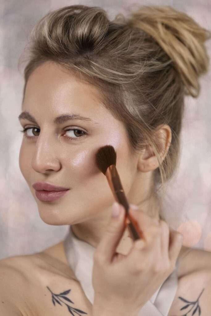 একটু BB/CC ক্রিম বা হালকা ফাউন্ডেশন দিয়ে মুখে ব্লেন্ড করে নিন। হাতে সময় কম থাকলে স্পঞ্জ বা হাত দিয়েও ব্লেন্ড করা যায়।